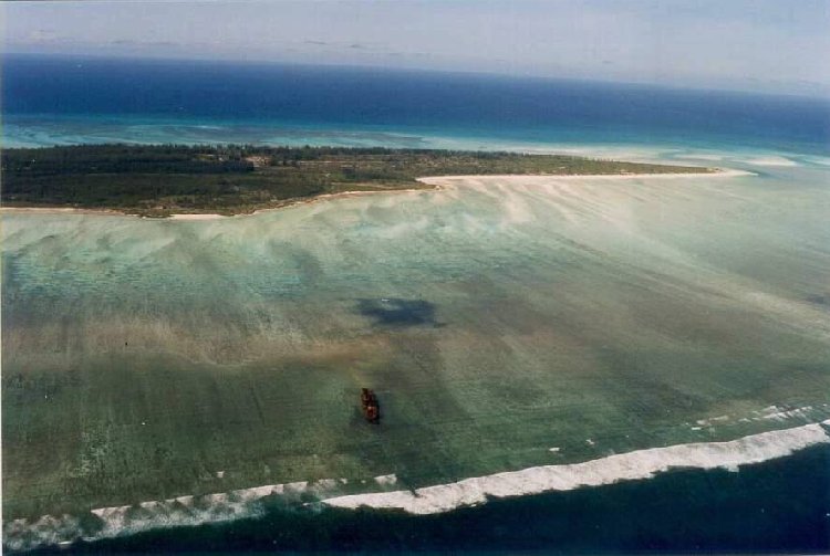 .. Vue aérienne de Juan de Nova .. , au premier plan : le Charbonnier